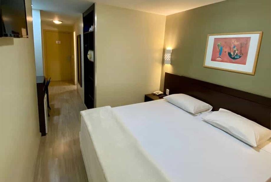 Apartamento de 18 m2 com: 01 cama de casal ou 02 camas de solteiro - Ar-condicionado de parede (janela); - Cofre; - TV LCD a cabo; - Frigobar; - Wi-Fi cortesia; - Piso laminado; - Fechadura com cartão magnético; - Apartamentos localizados de frente para Avenida Protásio Alves.